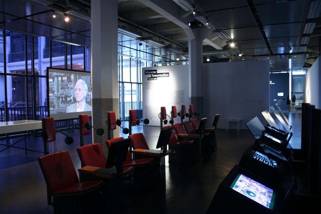 "Monster Resurrection", a video installation by the artist and theorist David Link, portrays four British engineers and curators who practiced media archaeology long before the humanities discovered the theme. Christopher P. Burton, John Harper, Tony Sale and Doron Swade worked intensively over many years on reconstructing four machines, which represent some of the milestones in the history of computing. The interviews recount the reconstruction of the "Difference Engine No. 2", which was developed by Charles Baggabe in the middle of the 19th century and the "Manchester Baby", the world’s first computer that was developed in Manchester in 1948. The engineers also report on the reconstruction of the "Turing Bombe" and "Colossus", two machines that were developed during the Second World War in top secrecy at Bletchley Park in England, where scientists like Alan Turing succeeded in cracking the German armed forces' encoding.
